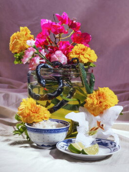 „Meine Erfahrung als Migrationskind ist vor allem von einem Gefühl der Unsichtbarkeit und Scham geprägt“, sagt sie. „Mit der Arbeit suche ich nach einem Ort, an dem ich meine Familie und Wurzeln ohne verzerrte Selbstwahrnehmung erleben kann.“ Diesen findet sie auch in Gegenständen des Alltags, die sie stilisiert inszeniert. Daneben existieren Momente der Ruhe aber auch das alltägliche Chaos des Miteinanders.
